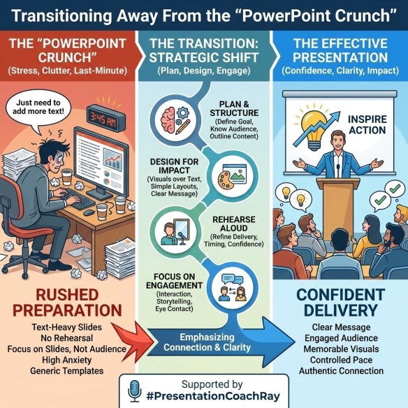 The “crutch” often stems from a broken preparation process in which the PowerPoint application is used as a word processor to draft the entire talk. The narrative gets trapped in the slide deck rather than being owned by the speaker.