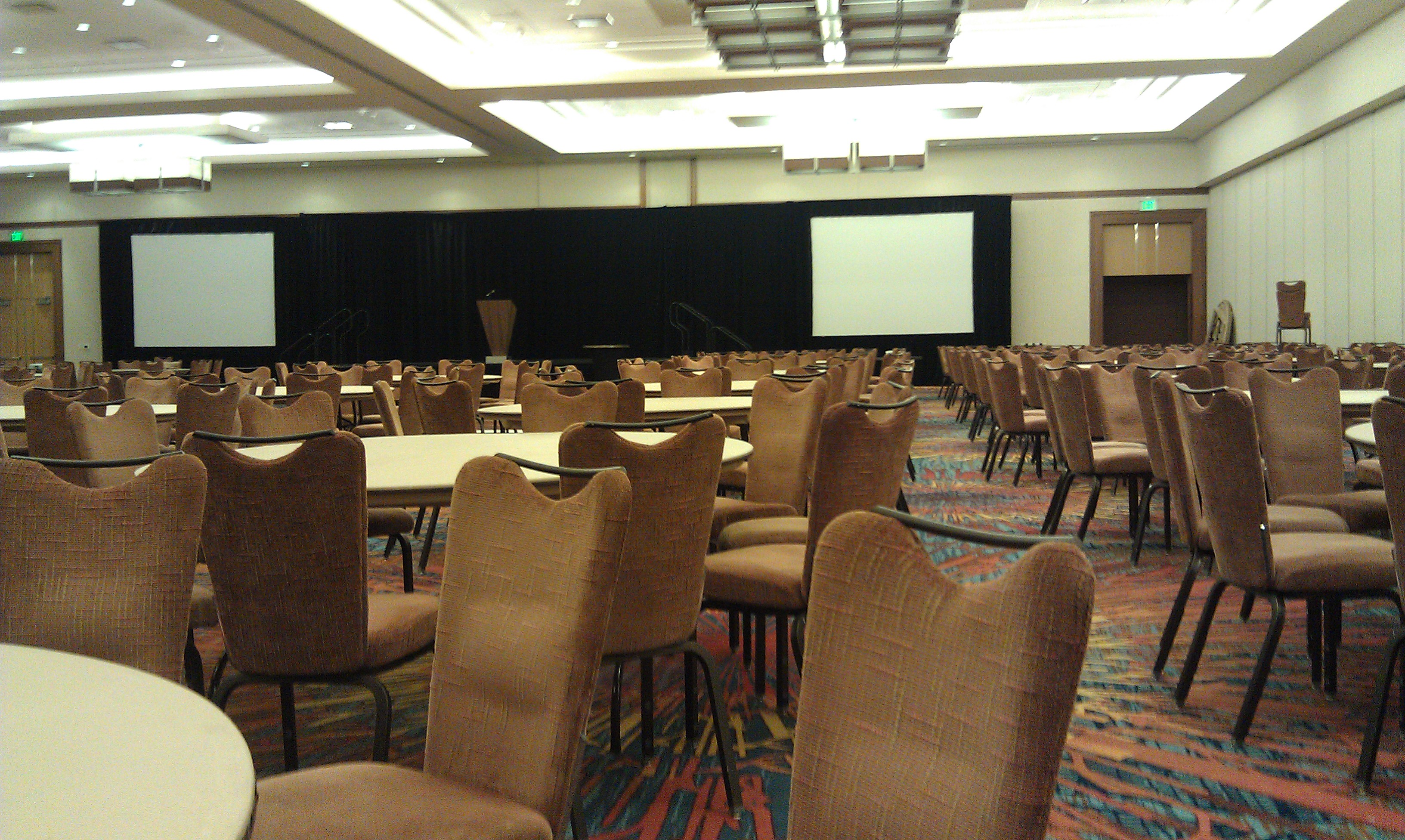 We know anyone in the second row all the way back to the last row in a meeting can’t see anything on the projection screen below 5’6″ from the floor.
